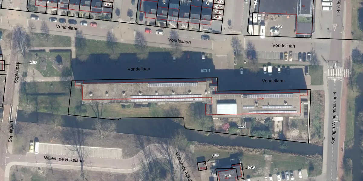 Het perceel waarop Vondellaan 54 staat heeft een oppervlakte van 3163 m². Dit is een zeer groot perceel. De perceeloppervlakte wordt geregistreerd door het Kadaster. Gedetailleerde informatie over de maten van dit perceel kunt u vinden in het rapport Kadastrale kaart met maatvoering van Vondellaan 54.