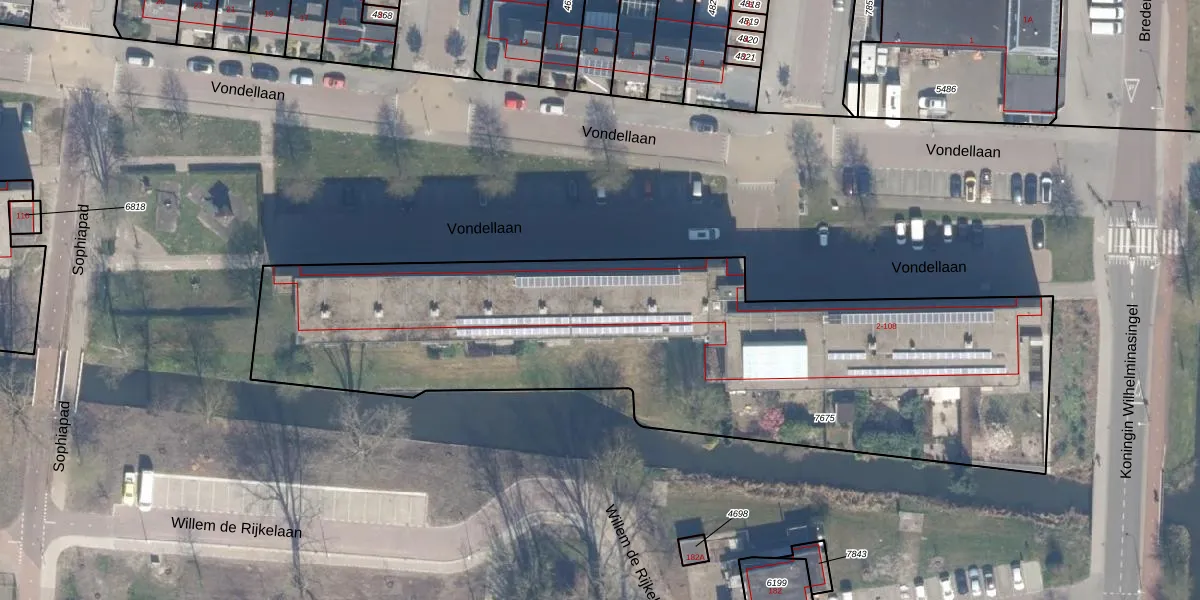 Het perceel waarop Vondellaan 56 staat heeft een oppervlakte van 3163 m². Dit is een zeer groot perceel. De perceeloppervlakte wordt geregistreerd door het Kadaster. Gedetailleerde informatie over de maten van dit perceel kunt u vinden in het rapport Kadastrale kaart met maatvoering van Vondellaan 56.