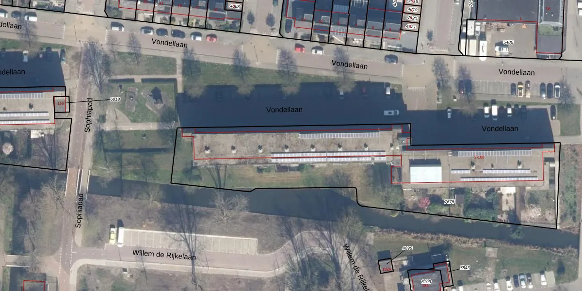 Het perceel waarop Vondellaan 64 staat heeft een oppervlakte van 3163 m². Dit is een zeer groot perceel. De perceeloppervlakte wordt geregistreerd door het Kadaster. Gedetailleerde informatie over de maten van dit perceel kunt u vinden in het rapport Kadastrale kaart met maatvoering van Vondellaan 64.