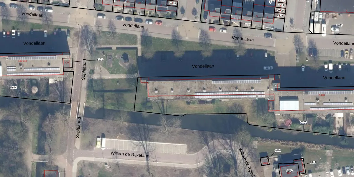 Het perceel waarop Vondellaan 72 staat heeft een oppervlakte van 3163 m². Dit is een zeer groot perceel. De perceeloppervlakte wordt geregistreerd door het Kadaster. Gedetailleerde informatie over de maten van dit perceel kunt u vinden in het rapport Kadastrale kaart met maatvoering van Vondellaan 72.