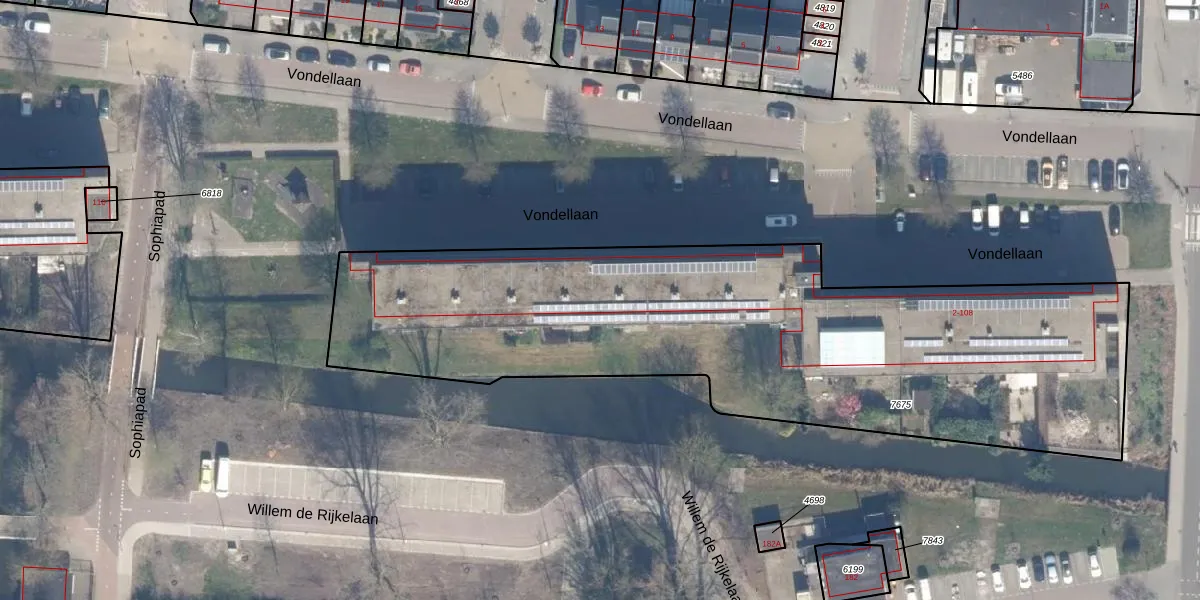 Het perceel waarop Vondellaan 92 staat heeft een oppervlakte van 3163 m². Dit is een zeer groot perceel. De perceeloppervlakte wordt geregistreerd door het Kadaster. Gedetailleerde informatie over de maten van dit perceel kunt u vinden in het rapport Kadastrale kaart met maatvoering van Vondellaan 92.