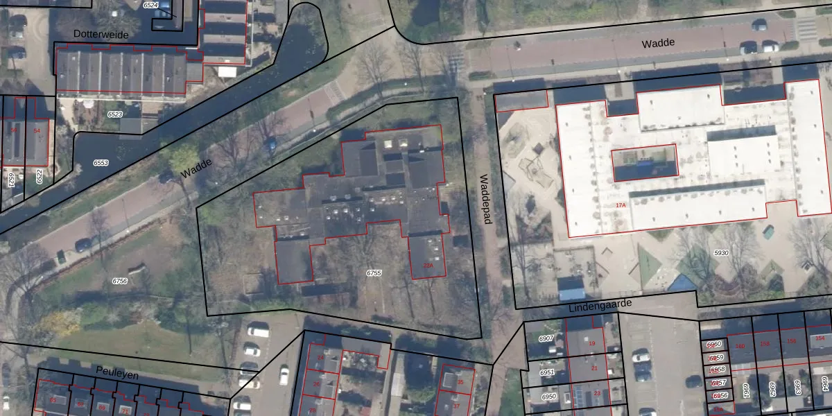 Het perceel waarop Wadde 45 staat heeft een oppervlakte van 2775 m². Dit is een zeer groot perceel. De perceeloppervlakte wordt geregistreerd door het Kadaster. Gedetailleerde informatie over de maten van dit perceel kunt u vinden in het rapport Kadastrale kaart met maatvoering van Wadde 45.