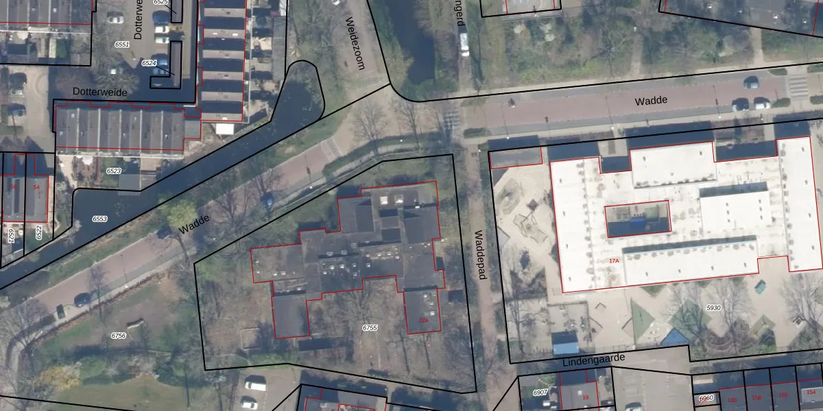 Het perceel waarop Wadde 55 staat heeft een oppervlakte van 2775 m². Dit is een zeer groot perceel. De perceeloppervlakte wordt geregistreerd door het Kadaster. Gedetailleerde informatie over de maten van dit perceel kunt u vinden in het rapport Kadastrale kaart met maatvoering van Wadde 55.