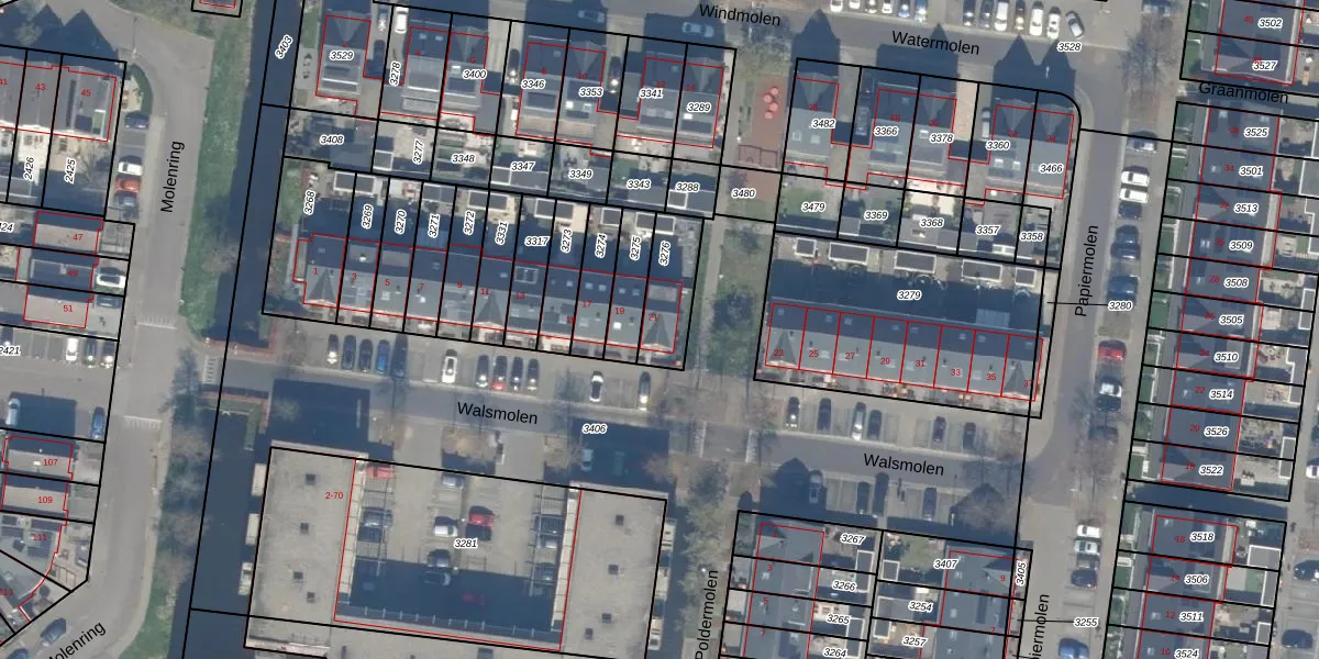 Gebruik de zoekbalk of klik op een perceel voor informatie over de adressen binnen dit perceel.