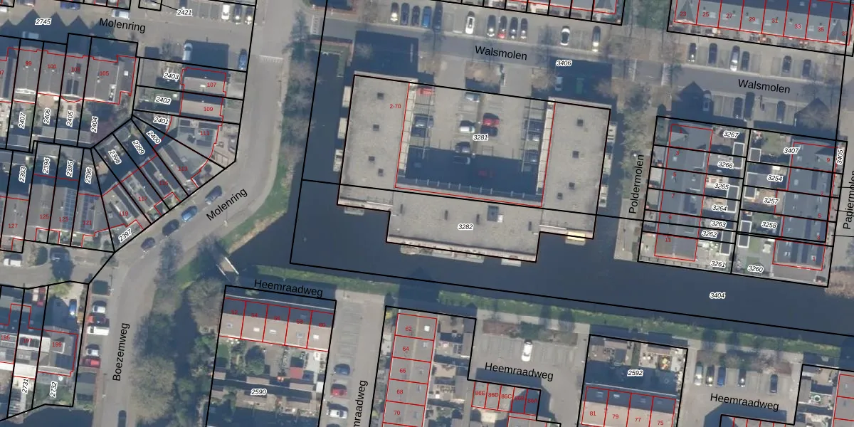 Het perceel waarop Walsmolen 32 staat heeft een oppervlakte van 571 m². Dit is een groot perceel. De perceeloppervlakte wordt geregistreerd door het Kadaster. Gedetailleerde informatie over de maten van dit perceel kunt u vinden in het rapport Kadastrale kaart met maatvoering van Walsmolen 32.