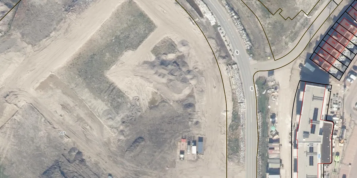 Het perceel waarop het adres ligt is WDV01-E-5315. De afkorting 'WDV01' staat voor kadastrale gemeente Waddinxveen. Het perceel is met 2,6 ha relatief groot. Het gemiddelde ligt in de kadastrale gemeente Waddinxveen op 2159,45 m². Het grootste perceel in de kadastrale gemeente is 49,8 ha. Het kleinste perceel heeft een oppervlakte van 0 m². Op het perceel liggen in totaal 45 adressen. De huidige grenzen van het perceel zijn digitaal in de Basisregistratie Kadaster (BRK) geregistreerd op 27-05-2025.