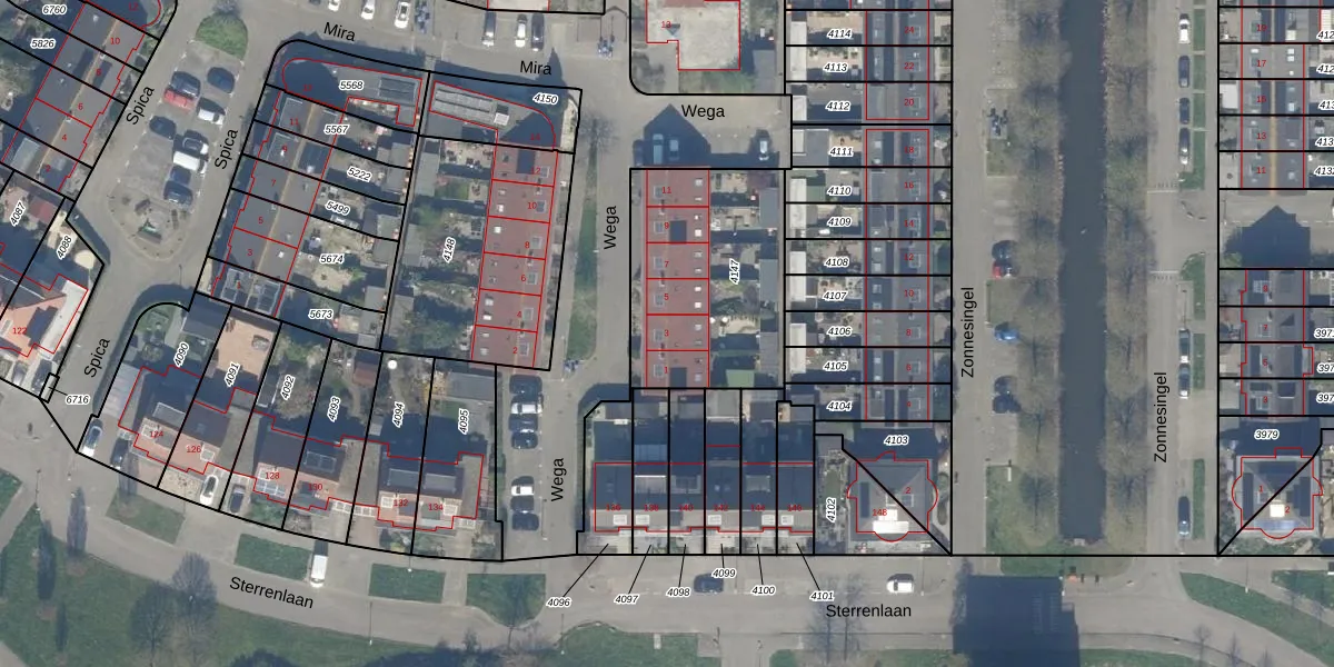 Het perceel waarop Wega 3 staat heeft een oppervlakte van 763 m². Dit is een groot perceel. De perceeloppervlakte wordt geregistreerd door het Kadaster. Gedetailleerde informatie over de maten van dit perceel kunt u vinden in het rapport Kadastrale kaart met maatvoering van Wega 3.