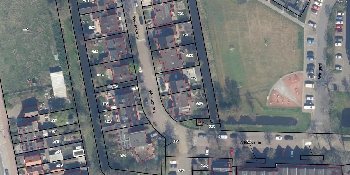 Weidezoom 7 is gelegen op kadastraal perceel WDV01B6492. Deze kadastrale aanduiding is uniek en wordt gebruikt door het Kadaster om eigendomsrechten en andere zakelijke rechten vast te leggen. Het perceel maakt onderdeel uit van de kadastrale gemeente Waddinxveen.