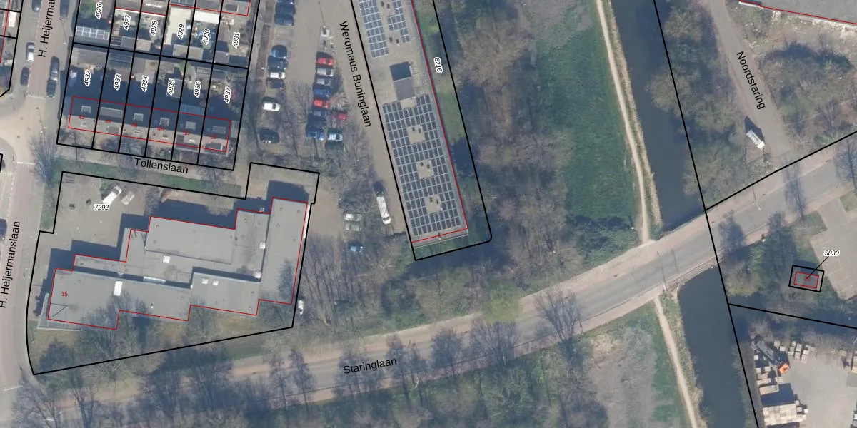 Het adres ligt op het perceel WDV01-B-6216, dat zich in de kadastrale gemeente Waddinxveen bevindt. Het perceel is kleiner dan gemiddeld in Waddinxveen. Het perceel is 1437 m² groot, terwijl het gemiddelde ligt op 2158,81 m². De grootste perceeloppervlakte in de kadastrale gemeente is 49,8 ha. De kleinste oppervlakte bedraagt 0 m². Op het perceel liggen in totaal 54 adressen. De huidige grenzen van het perceel zijn digitaal in de Basisregistratie Kadaster (BRK) geregistreerd op 22-10-2009.