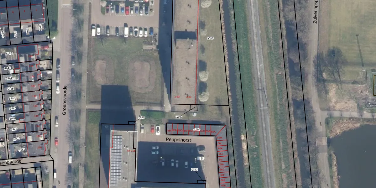 Het perceel waarop het adres ligt is WDV01-B-5666. De afkorting 'WDV01' staat voor kadastrale gemeente Waddinxveen. Het perceel is kleiner dan gemiddeld in Waddinxveen. Het perceel is 1945 m² groot, terwijl het gemiddelde ligt op 2158,97 m². De grootste perceeloppervlakte in de kadastrale gemeente is 49,8 ha. De kleinste oppervlakte bedraagt 0 m². Op het perceel zijn 64 adressen aanwezig. De laatste wijziging in het de Basisregistratie Kadaster (BRK) was op 17-12-2012.