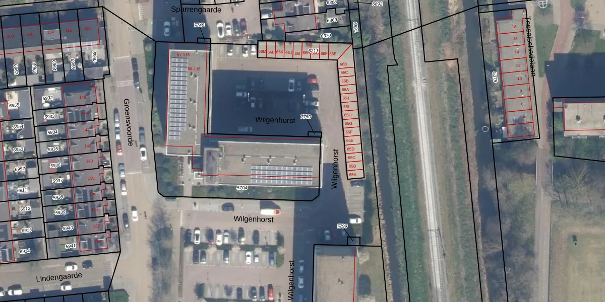 Het perceel waarop Wilgenhorst 77 staat heeft een oppervlakte van 1710 m². Dit is een zeer groot perceel. De perceeloppervlakte wordt geregistreerd door het Kadaster. Gedetailleerde informatie over de maten van dit perceel kunt u vinden in het rapport Kadastrale kaart met maatvoering van Wilgenhorst 77.