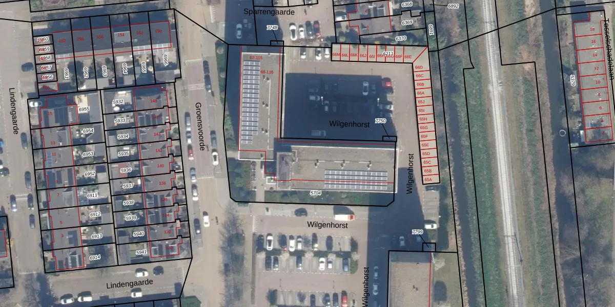 Het perceel waarop Wilgenhorst 80 staat heeft een oppervlakte van 1710 m². Dit is een zeer groot perceel. De perceeloppervlakte wordt geregistreerd door het Kadaster. Gedetailleerde informatie over de maten van dit perceel kunt u vinden in het rapport Kadastrale kaart met maatvoering van Wilgenhorst 80.