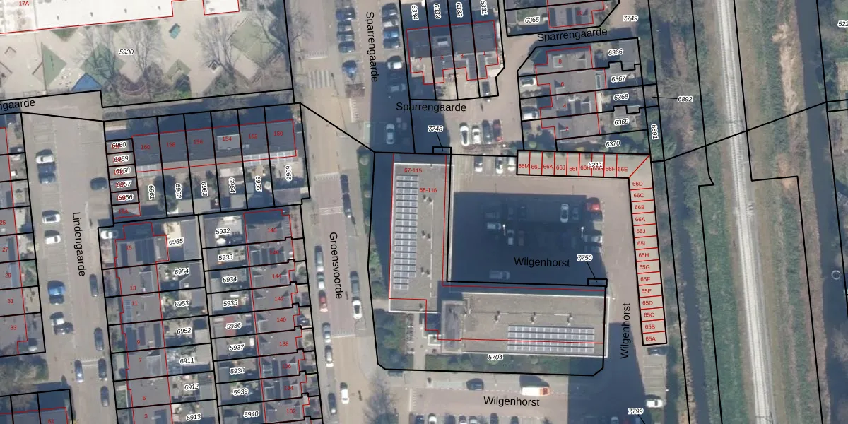 Het perceel waarop het adres ligt is WDV01-B-5704. De afkorting 'WDV01' staat voor kadastrale gemeente Waddinxveen. Het perceel is kleiner dan gemiddeld in Waddinxveen. Het perceel is 1710 m² groot, terwijl het gemiddelde ligt op 2158,97 m². De grootste perceeloppervlakte in de kadastrale gemeente is 49,8 ha. De kleinste oppervlakte bedraagt 0 m². Op het perceel zijn 50 adressen aanwezig. De laatste wijziging in het de Basisregistratie Kadaster (BRK) was op 28-10-2009.