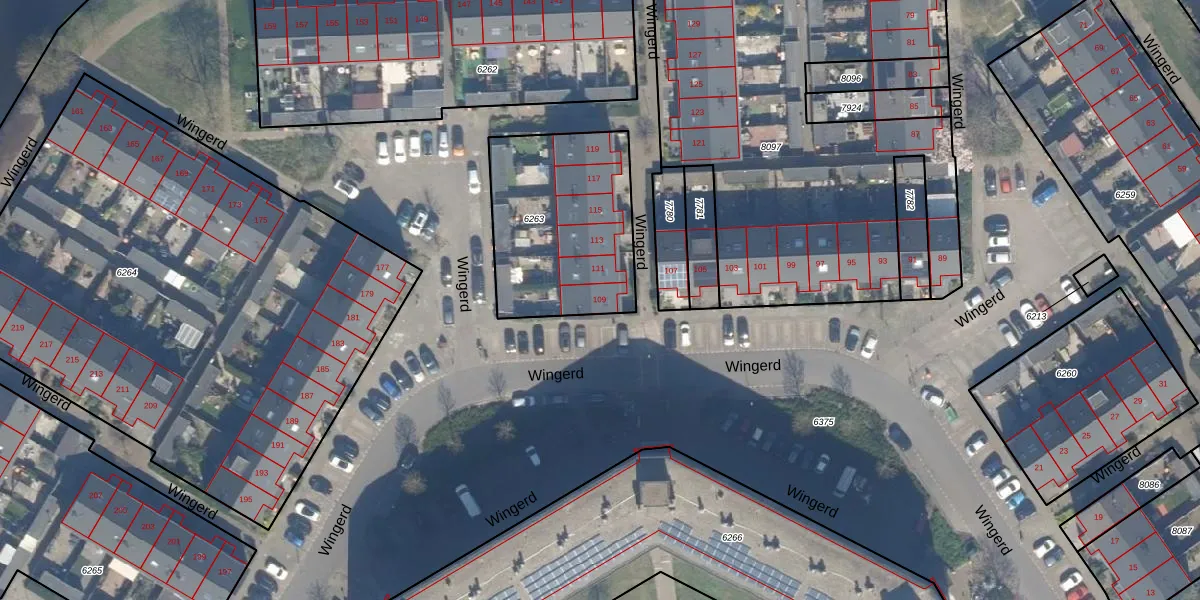 Wingerd 109 is gelegen op kadastraal perceel WDV01B6263. Deze kadastrale aanduiding is uniek en wordt gebruikt door het Kadaster om eigendomsrechten en andere zakelijke rechten vast te leggen. Het perceel maakt onderdeel uit van de kadastrale gemeente Waddinxveen.