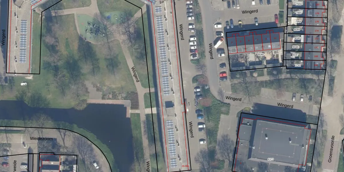 Wingerd 110 is gelegen op kadastraal perceel WDV01B6266. Deze kadastrale aanduiding is uniek en wordt gebruikt door het Kadaster om eigendomsrechten en andere zakelijke rechten vast te leggen. Het perceel maakt onderdeel uit van de kadastrale gemeente Waddinxveen.