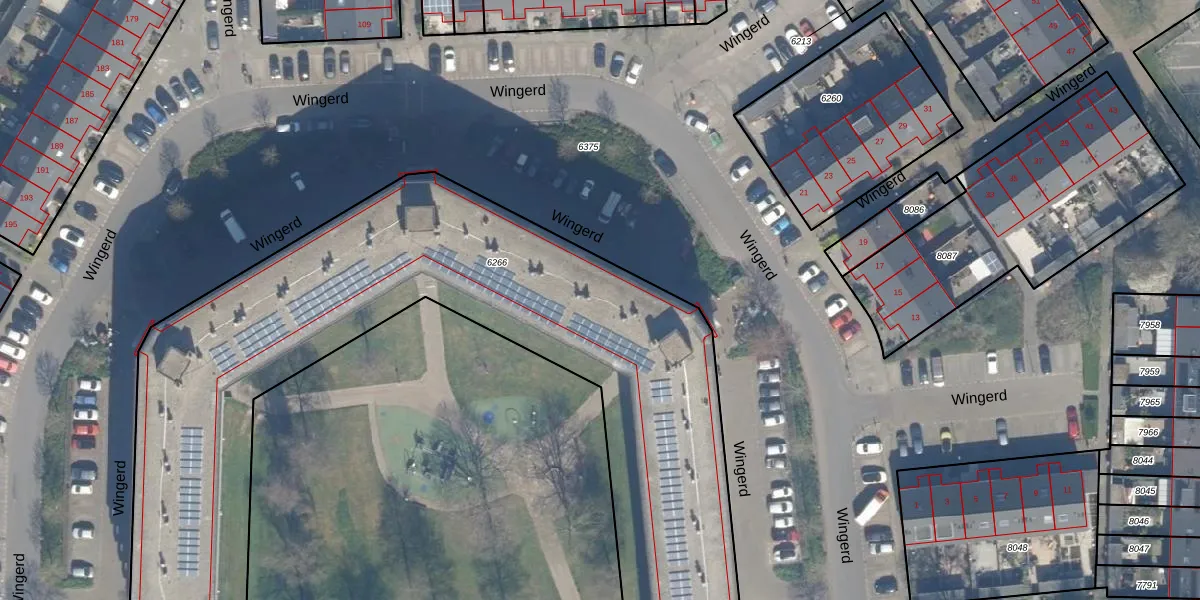 Het perceel waarop Wingerd 126 staat heeft een oppervlakte van 4420 m². Dit is een zeer groot perceel. De perceeloppervlakte wordt geregistreerd door het Kadaster. Gedetailleerde informatie over de maten van dit perceel kunt u vinden in het rapport Kadastrale kaart met maatvoering van Wingerd 126.