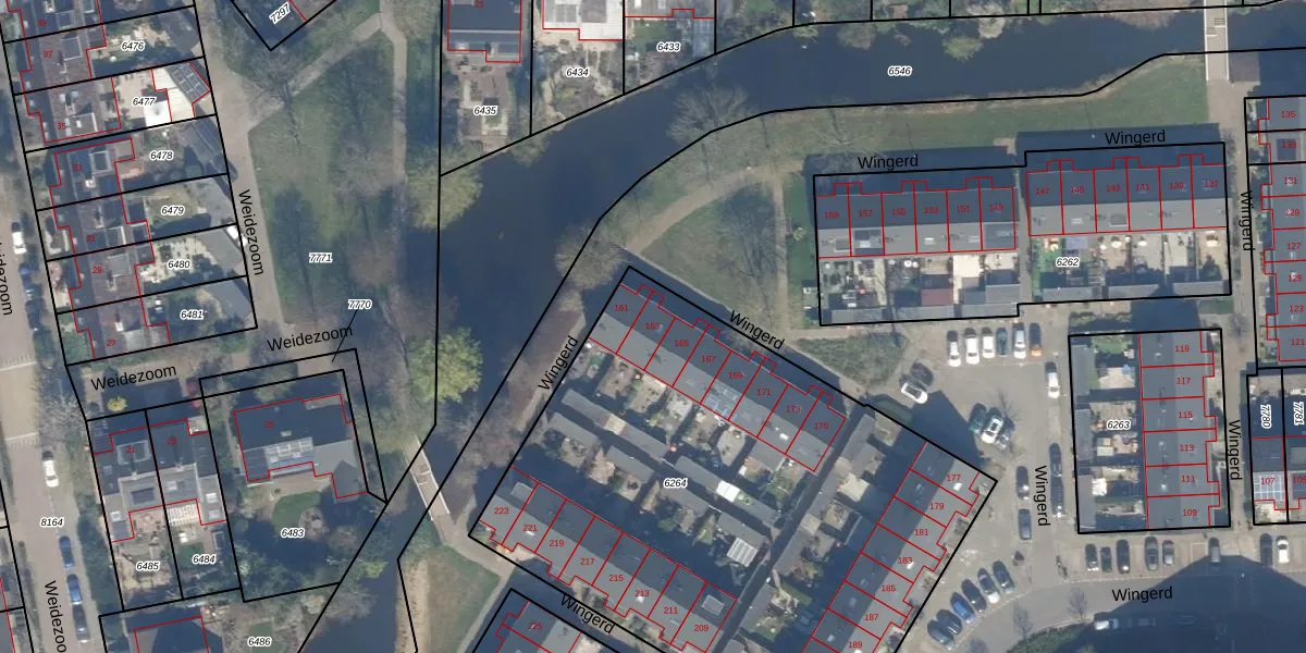 Wingerd 163 is gelegen op kadastraal perceel WDV01B6264. Deze kadastrale aanduiding is uniek en wordt gebruikt door het Kadaster om eigendomsrechten en andere zakelijke rechten vast te leggen. Het perceel maakt onderdeel uit van de kadastrale gemeente Waddinxveen.