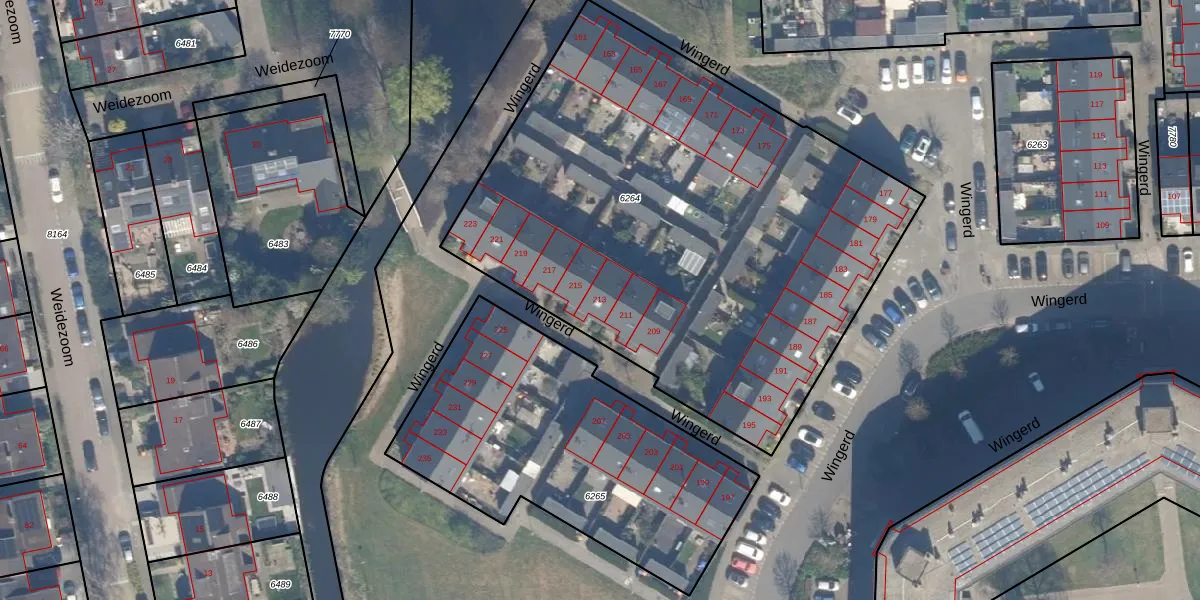 Het perceel waarop Wingerd 213 staat heeft een oppervlakte van 3206 m². Dit is een zeer groot perceel. De perceeloppervlakte wordt geregistreerd door het Kadaster. Gedetailleerde informatie over de maten van dit perceel kunt u vinden in het rapport Kadastrale kaart met maatvoering van Wingerd 213.