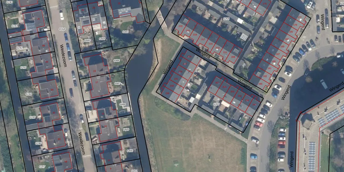 Wingerd 233 is gelegen op kadastraal perceel WDV01B6265. Deze kadastrale aanduiding is uniek en wordt gebruikt door het Kadaster om eigendomsrechten en andere zakelijke rechten vast te leggen. Het perceel maakt onderdeel uit van de kadastrale gemeente Waddinxveen.
