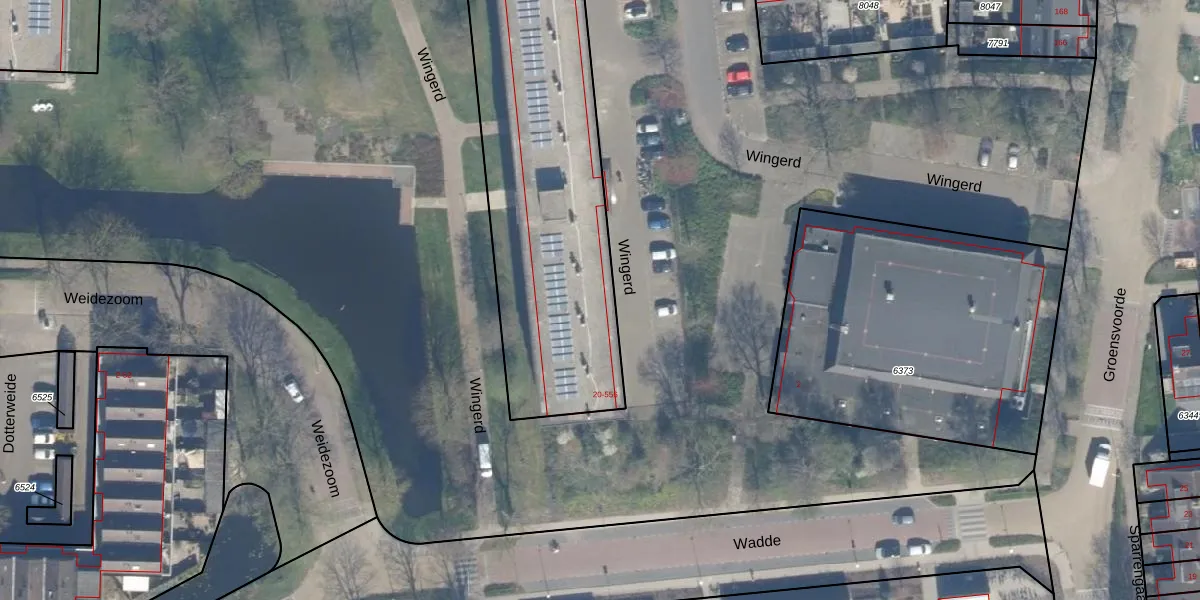 Het perceel waarop het adres ligt is WDV01-B-6266. De afkorting 'WDV01' staat voor kadastrale gemeente Waddinxveen. De oppervlakte van het perceel is 4420 m². Dat is groter dan gemiddeld in Waddinxveen, waar de gemiddelde perceeloppervlakte op 2160,72 m² ligt. De grootste perceeloppervlakte in de kadastrale gemeente is 49,8 ha. De kleinste oppervlakte bedraagt 0 m². Op het perceel liggen in totaal 170 adressen. De huidige grenzen van het perceel zijn digitaal in de Basisregistratie Kadaster (BRK) geregistreerd op 05-02-1998.