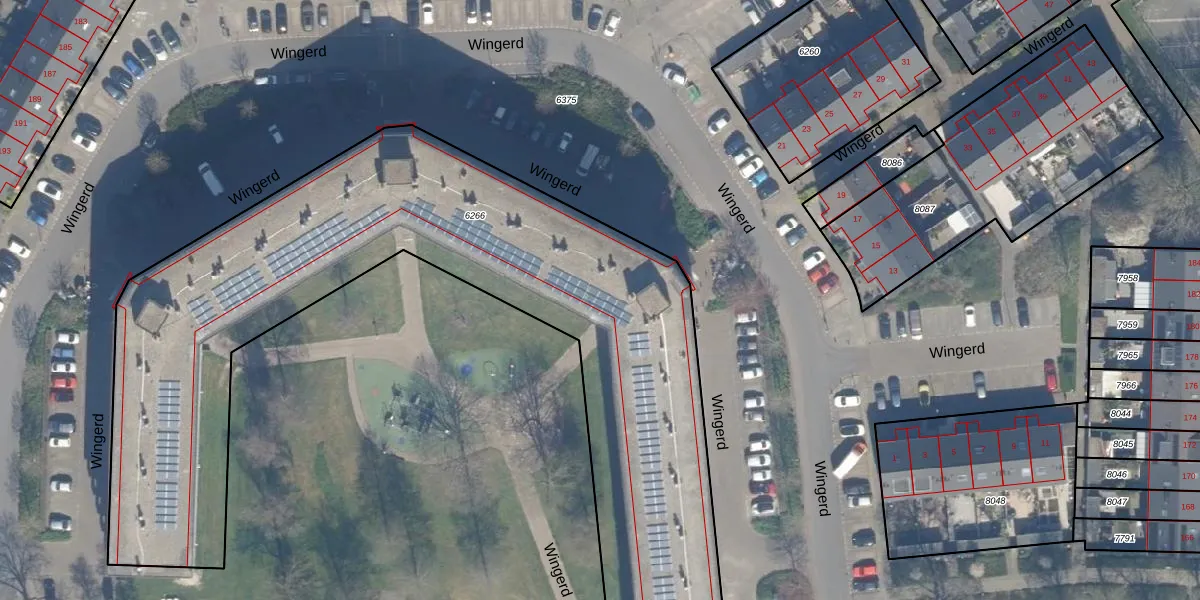 Het perceel waarop het adres ligt is WDV01-B-6266. De afkorting 'WDV01' staat voor kadastrale gemeente Waddinxveen. Het perceel is met 4420 m² relatief groot. Het gemiddelde ligt in de kadastrale gemeente Waddinxveen op 2160,72 m². De grootste perceeloppervlakte in de kadastrale gemeente is 49,8 ha. De kleinste oppervlakte bedraagt 0 m². Op het perceel liggen in totaal 170 adressen. De huidige grenzen van het perceel zijn digitaal in de Basisregistratie Kadaster (BRK) geregistreerd op 05-02-1998.