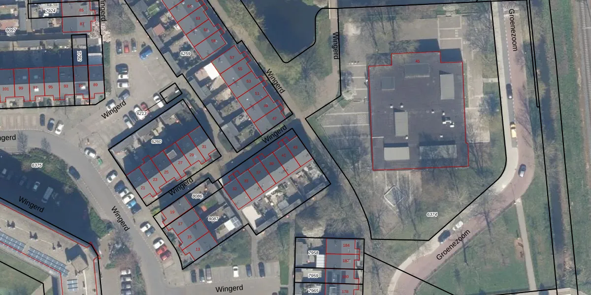 Het perceel waarop Wingerd 43 staat heeft een oppervlakte van 1092 m². Dit is een zeer groot perceel. De perceeloppervlakte wordt geregistreerd door het Kadaster. Gedetailleerde informatie over de maten van dit perceel kunt u vinden in het rapport Kadastrale kaart met maatvoering van Wingerd 43.