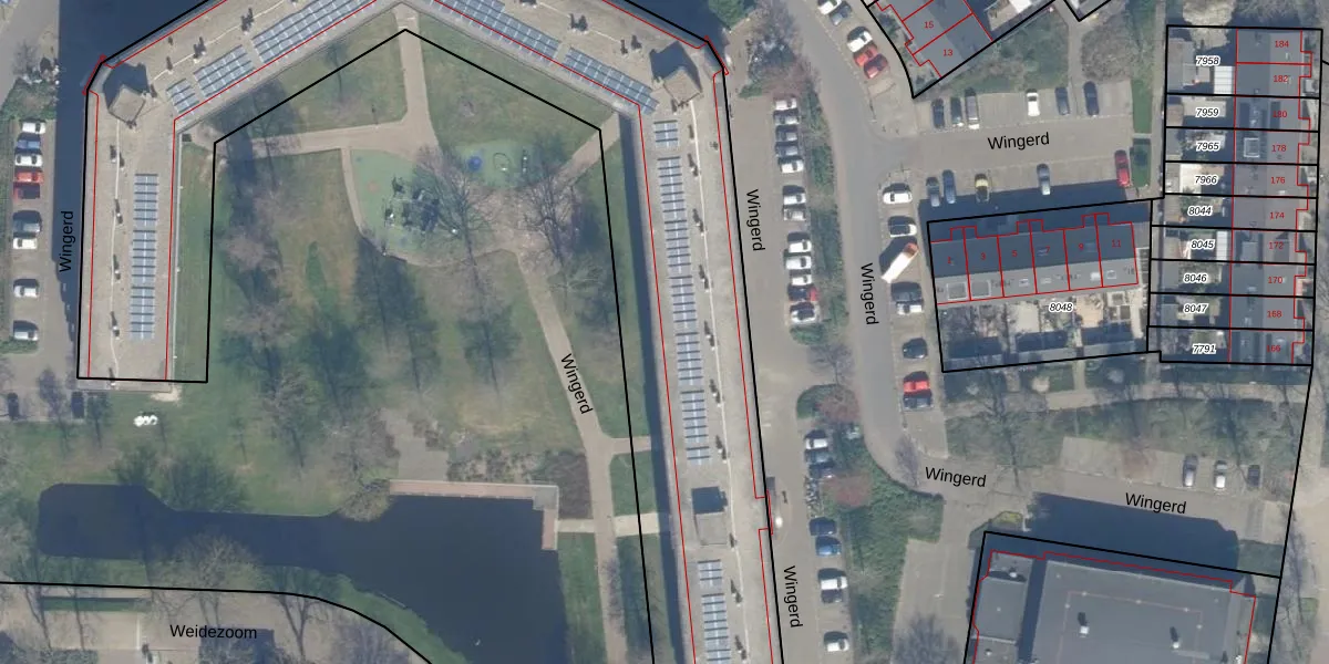 Het perceel waarop het adres ligt is WDV01-B-6266. De afkorting 'WDV01' staat voor kadastrale gemeente Waddinxveen. Het perceel is met 4420 m² relatief groot. Het gemiddelde ligt in de kadastrale gemeente Waddinxveen op 2160,72 m². De grootste perceeloppervlakte in de kadastrale gemeente is 49,8 ha. De kleinste oppervlakte bedraagt 0 m². Op het perceel zijn 170 adressen aanwezig. De huidige grenzen van het perceel zijn digitaal in de Basisregistratie Kadaster (BRK) geregistreerd op 05-02-1998.