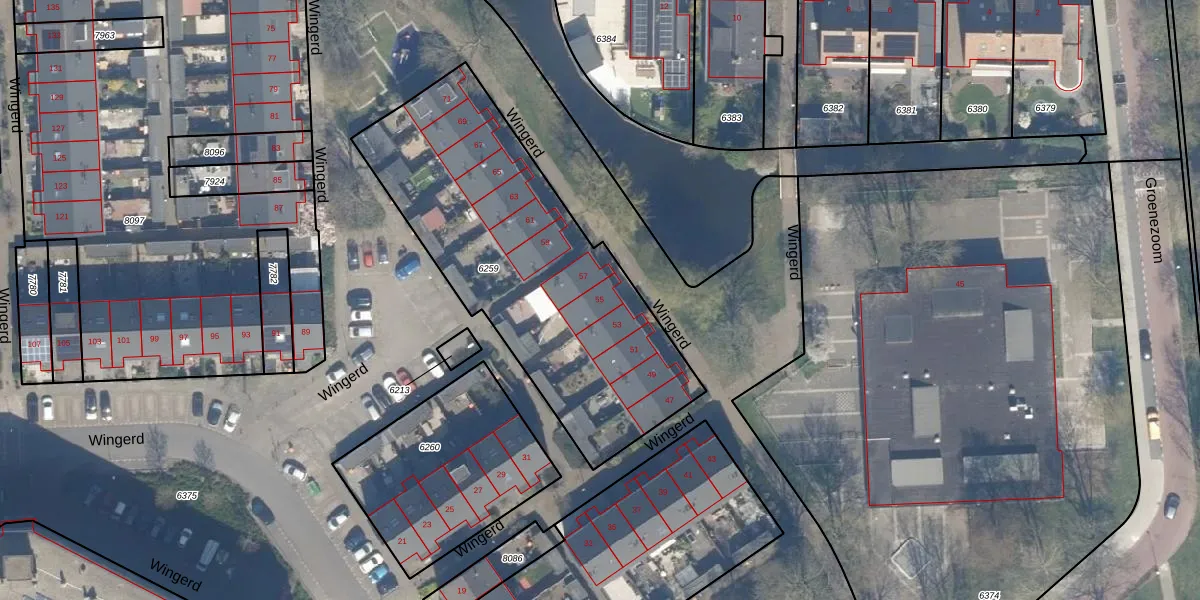 Het perceel waarop Wingerd 55 staat heeft een oppervlakte van 1561 m². Dit is een zeer groot perceel. De perceeloppervlakte wordt geregistreerd door het Kadaster. Gedetailleerde informatie over de maten van dit perceel kunt u vinden in het rapport Kadastrale kaart met maatvoering van Wingerd 55.