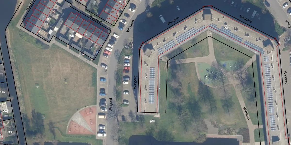 Het perceel waarop het adres ligt is WDV01-B-6266. De afkorting 'WDV01' staat voor kadastrale gemeente Waddinxveen. De oppervlakte van het perceel is 4420 m². Dat is groter dan gemiddeld in Waddinxveen, waar de gemiddelde perceeloppervlakte op 2160,72 m² ligt. Het grootste perceel in de kadastrale gemeente is 49,8 ha. Het kleinste perceel heeft een oppervlakte van 0 m². Op het perceel zijn 170 adressen aanwezig. De laatste wijziging in het de Basisregistratie Kadaster (BRK) was op 05-02-1998.