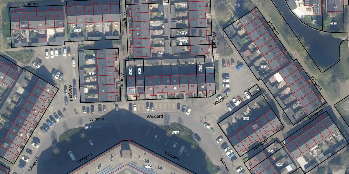 Het perceel waarop Wingerd 97 staat heeft een oppervlakte van 2501 m². Dit is een zeer groot perceel. De perceeloppervlakte wordt geregistreerd door het Kadaster. Gedetailleerde informatie over de maten van dit perceel kunt u vinden in het rapport Kadastrale kaart met maatvoering van Wingerd 97.