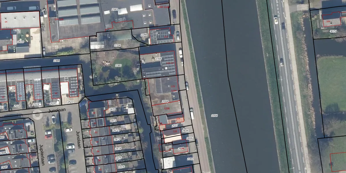 Het adres ligt op het perceel WDV01-F-2004, dat zich in de kadastrale gemeente Waddinxveen bevindt. De gemiddelde perceelgrootte in Waddinxveen is 2158,97 m². Dit perceel is kleiner: de perceeloppervlakte bedraagt 439 m². Het grootste perceel in de kadastrale gemeente is 49,8 ha. Het kleinste perceel heeft een oppervlakte van 0 m². Op het perceel zijn 3 adressen aanwezig. De laatste wijziging in het de Basisregistratie Kadaster (BRK) was op 02-11-2010.