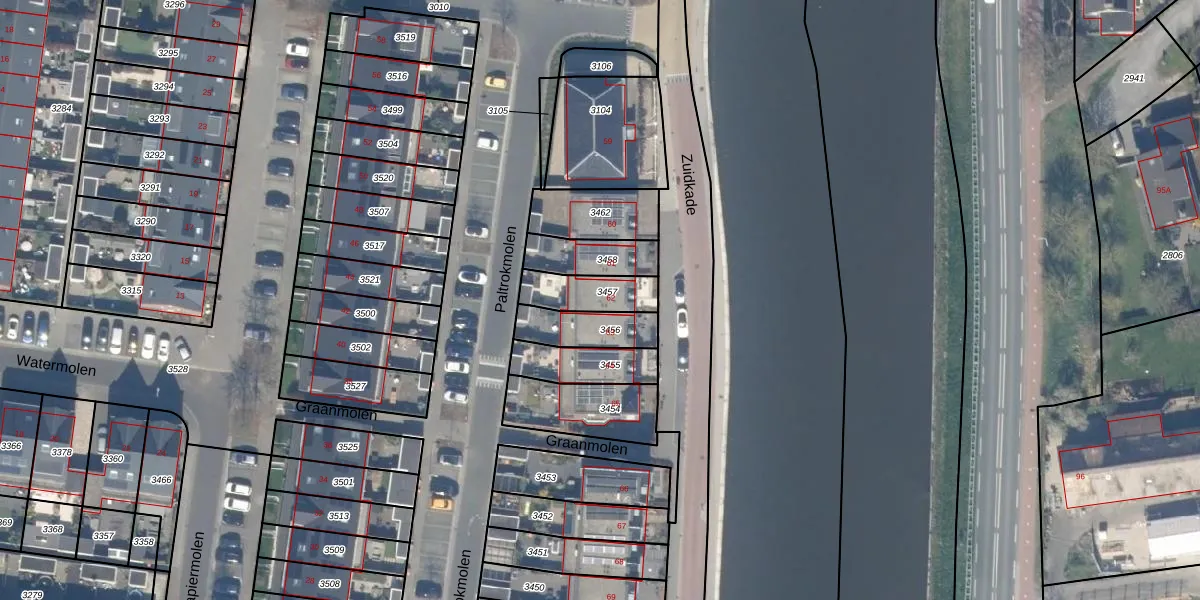 Zuidkade 62 is gelegen op kadastraal perceel WDV01D3457. Deze kadastrale aanduiding is uniek en wordt gebruikt door het Kadaster om eigendomsrechten en andere zakelijke rechten vast te leggen. Het perceel maakt onderdeel uit van de kadastrale gemeente Waddinxveen.