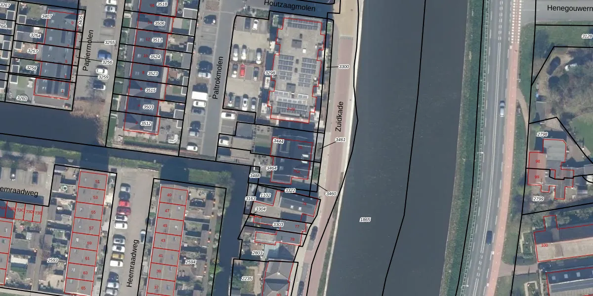 Gebruik de zoekbalk of klik op een perceel voor informatie over de adressen binnen dit perceel.