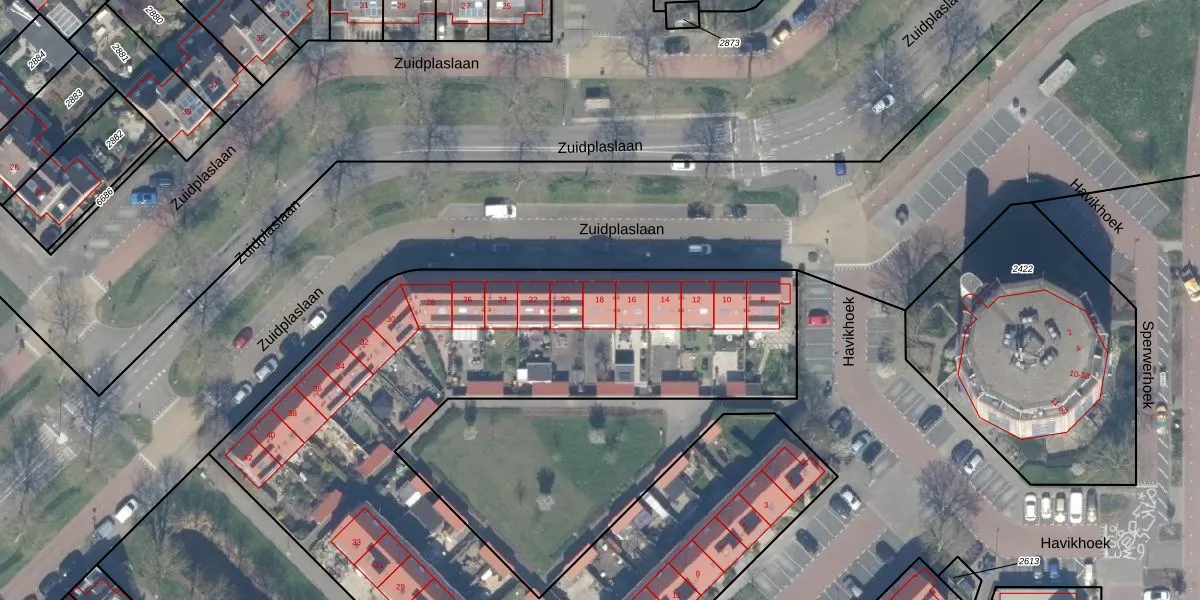 Zuidplaslaan 18 is gelegen op kadastraal perceel WDV01C2611. Deze kadastrale aanduiding is uniek en wordt gebruikt door het Kadaster om eigendomsrechten en andere zakelijke rechten vast te leggen. Het perceel maakt onderdeel uit van de kadastrale gemeente Waddinxveen.