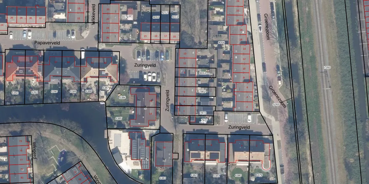 Gebruik de zoekbalk of klik op een perceel voor informatie over de adressen binnen dit perceel.
