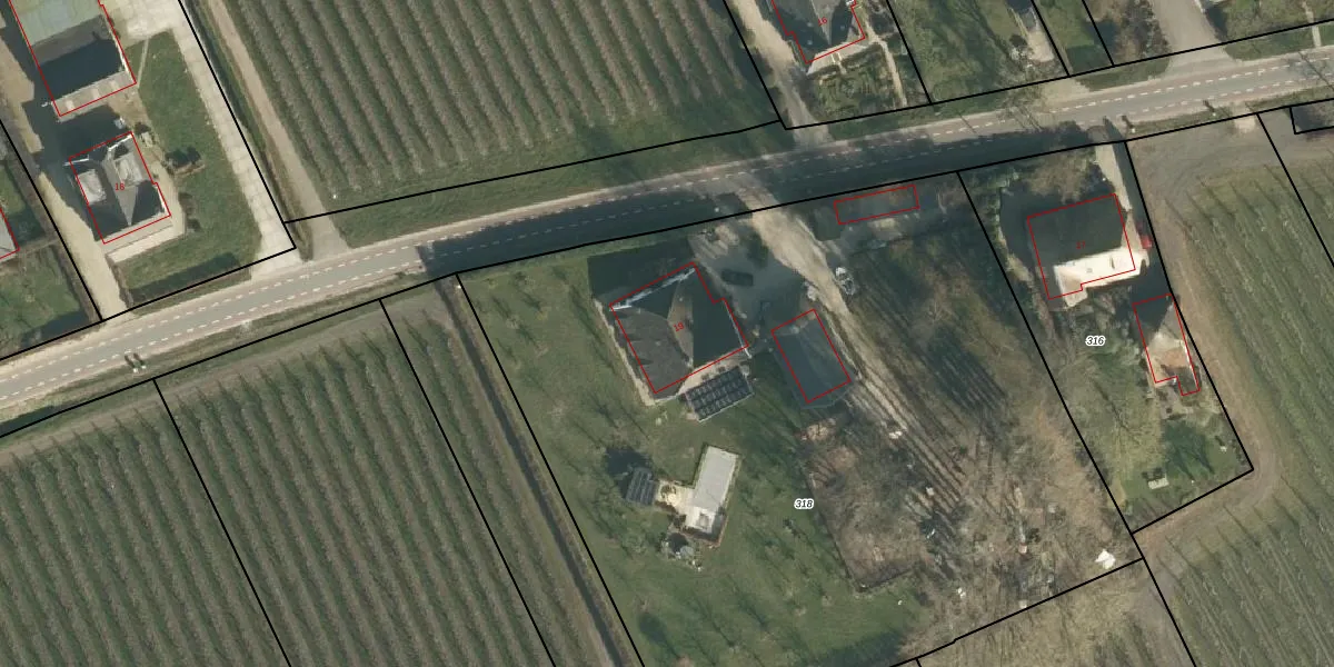 Het adres ligt op het perceel WDN03-E-318, dat zich in de kadastrale gemeente Wadenoijen bevindt. Het perceel is 5272 m² groot. Dat is kleiner dan de gemiddelde perceeloppervlakte in Wadenoijen, dat op 6560,98 m² ligt. Het grootste perceel in de kadastrale gemeente is 17,9 ha. Het kleinste perceel heeft een oppervlakte van 1 m². Er zijn geen andere adressen aanwezig op het perceel. De huidige grenzen van het perceel zijn digitaal in de Basisregistratie Kadaster (BRK) geregistreerd op 02-08-2005.