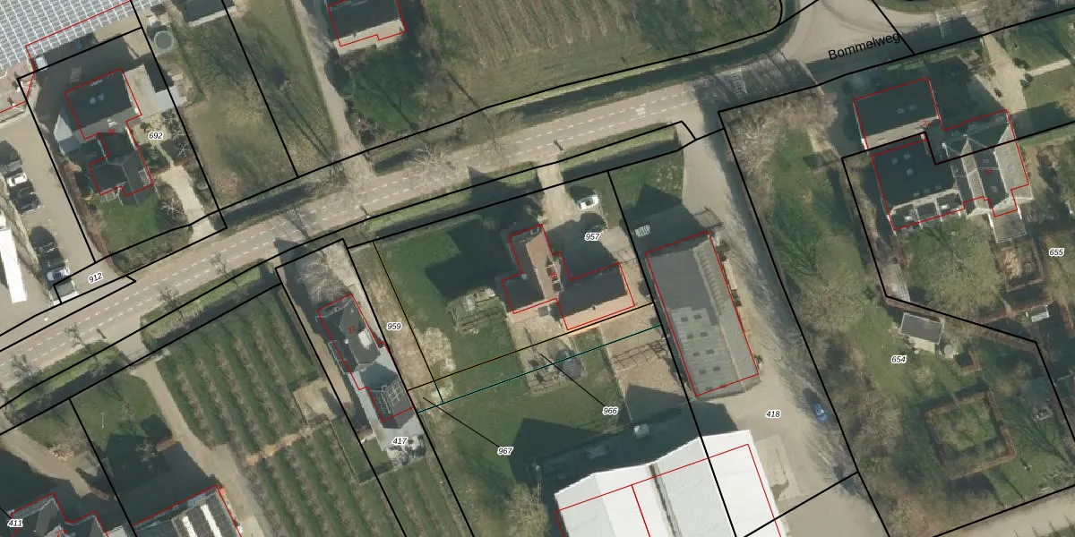 Bommelweg 25 is gelegen op kadastraal perceel WDN03E957. Deze kadastrale aanduiding is uniek en wordt gebruikt door het Kadaster om eigendomsrechten en andere zakelijke rechten vast te leggen. Het perceel maakt onderdeel uit van de kadastrale gemeente Wadenoijen.