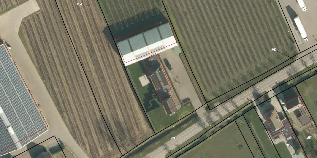 Het adres ligt op het perceel WDN03-E-374, dat zich in de kadastrale gemeente Wadenoijen bevindt. De oppervlakte van het perceel is 1,3 ha. Dat is groter dan gemiddeld in Wadenoijen, waar de gemiddelde perceeloppervlakte op 6560,98 m² ligt. Het grootste perceel in de kadastrale gemeente is 17,9 ha. Het kleinste perceel heeft een oppervlakte van 1 m². Er zijn geen andere adressen aanwezig op het perceel. De huidige grenzen van het perceel zijn digitaal in de Basisregistratie Kadaster (BRK) geregistreerd op 03-10-2018.