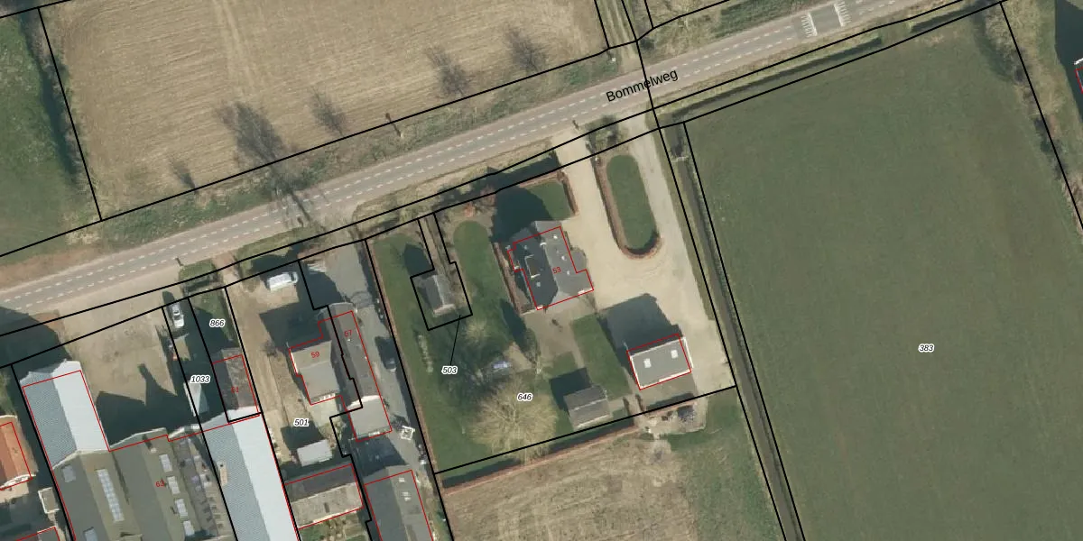 Bommelweg 53 is gelegen op kadastraal perceel WDN03E646. Deze kadastrale aanduiding is uniek en wordt gebruikt door het Kadaster om eigendomsrechten en andere zakelijke rechten vast te leggen. Het perceel maakt onderdeel uit van de kadastrale gemeente Wadenoijen.