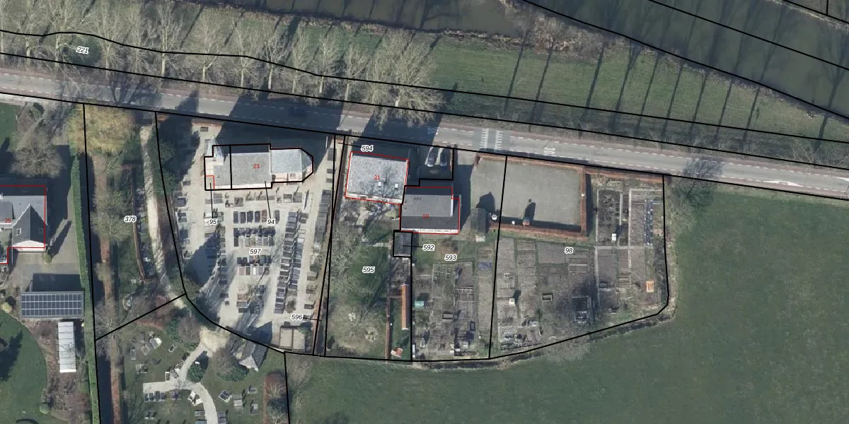 Het adres ligt op het perceel WDN03-A-593, dat zich in de kadastrale gemeente Wadenoijen bevindt. Het perceel is kleiner dan gemiddeld in Wadenoijen. Het perceel is 925 m² groot, terwijl het gemiddelde ligt op 6560,98 m². Het grootste perceel in de kadastrale gemeente is 17,9 ha. Het kleinste perceel heeft een oppervlakte van 1 m². Op het perceel bevinden zich geen andere adressen. In de Basisregistratie Kadaster (BRK) werden de grenzen van het perceel geregistreerd op 18-09-2018.