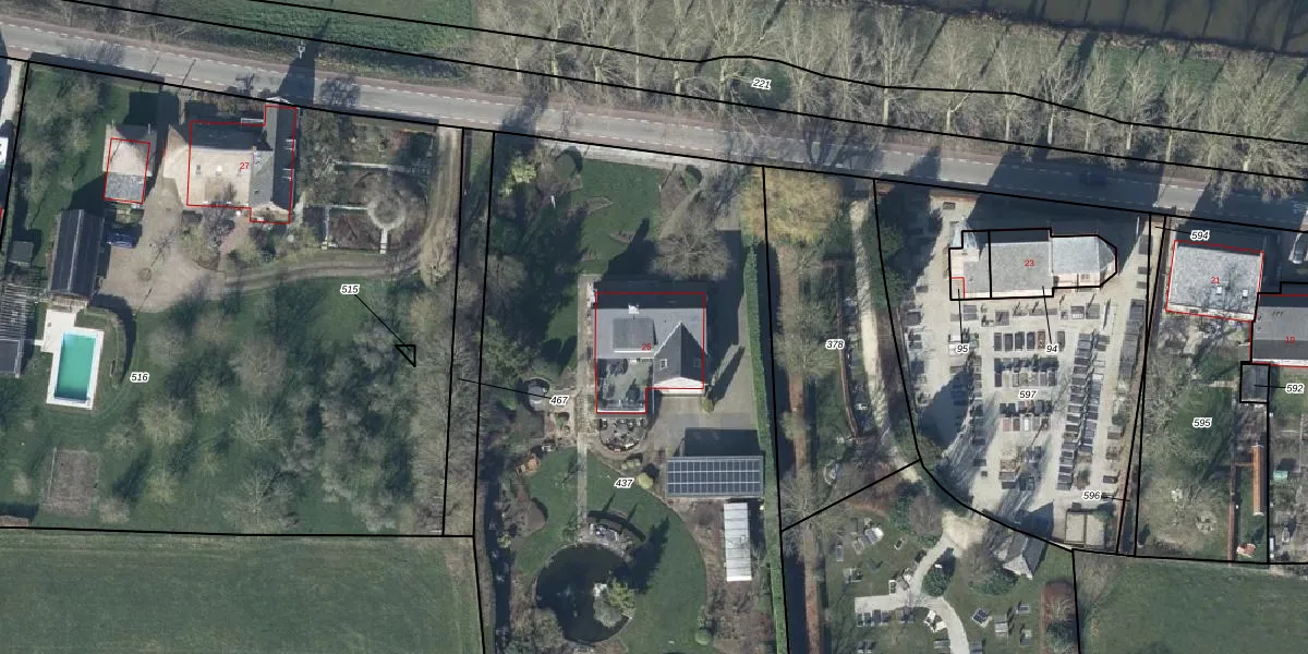 Het perceel waarop Lingedijk 25 staat heeft een oppervlakte van 4380 m². Dit is een zeer groot perceel. De perceeloppervlakte wordt geregistreerd door het Kadaster. Gedetailleerde informatie over de maten van dit perceel kunt u vinden in het rapport Kadastrale kaart met maatvoering van Lingedijk 25.