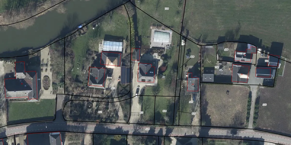 Het adres ligt op het perceel WDN03-E-610, dat zich in de kadastrale gemeente Wadenoijen bevindt. Het perceel is kleiner dan gemiddeld in Wadenoijen. Het perceel is 1743 m² groot, terwijl het gemiddelde ligt op 6560,98 m². De grootste perceeloppervlakte in de kadastrale gemeente is 17,9 ha. De kleinste oppervlakte bedraagt 1 m². Op het perceel bevinden zich geen andere adressen. In de Basisregistratie Kadaster (BRK) werden de grenzen van het perceel geregistreerd op 14-08-2008.