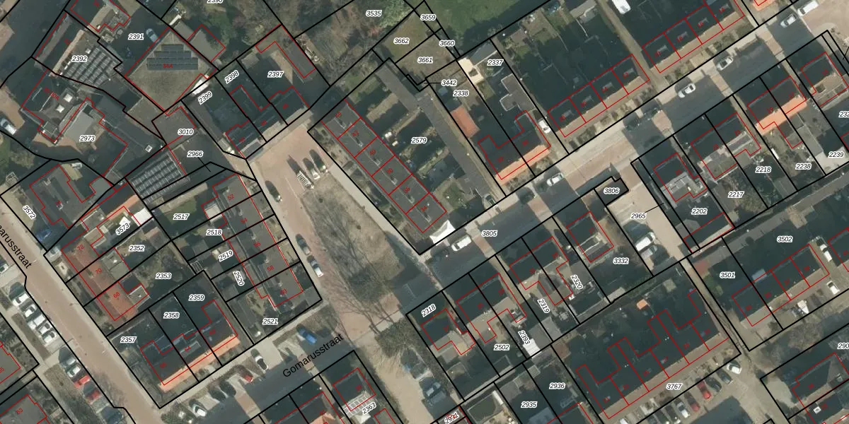 Gomarusstraat 34 is gelegen op kadastraal perceel THD00D2579. Deze kadastrale aanduiding is uniek en wordt gebruikt door het Kadaster om eigendomsrechten en andere zakelijke rechten vast te leggen. Het perceel maakt onderdeel uit van de kadastrale gemeente Terheijden.