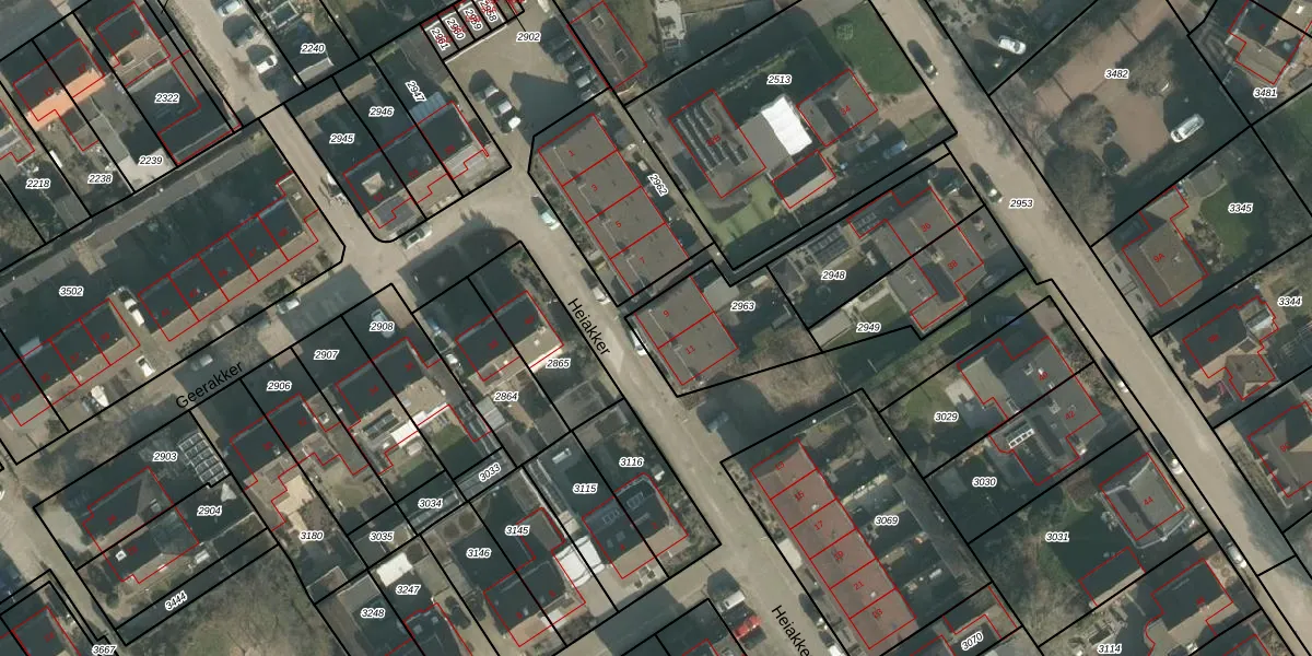 Heiakker 9 is gelegen op kadastraal perceel THD00D2963. Deze kadastrale aanduiding is uniek en wordt gebruikt door het Kadaster om eigendomsrechten en andere zakelijke rechten vast te leggen. Het perceel maakt onderdeel uit van de kadastrale gemeente Terheijden.