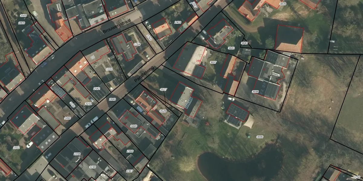 Parallelweg 24 is gelegen op kadastraal perceel THD00D3696. Deze kadastrale aanduiding is uniek en wordt gebruikt door het Kadaster om eigendomsrechten en andere zakelijke rechten vast te leggen. Het perceel maakt onderdeel uit van de kadastrale gemeente Terheijden.