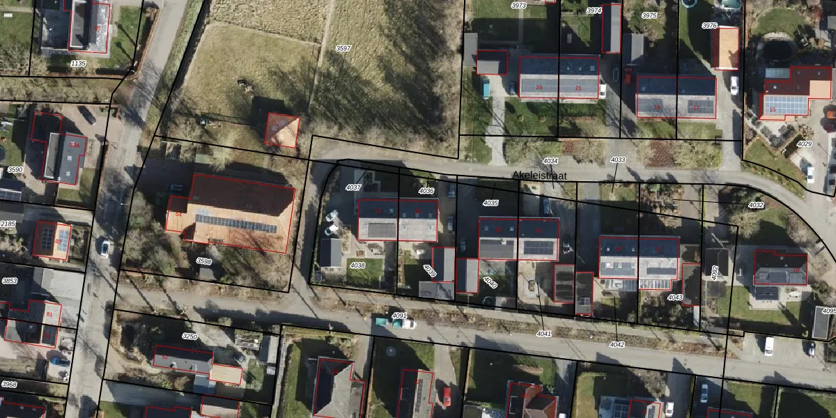 Akeleistraat 20 is gelegen op kadastraal perceel TMT00G4039. Deze kadastrale aanduiding is uniek en wordt gebruikt door het Kadaster om eigendomsrechten en andere zakelijke rechten vast te leggen. Het perceel maakt onderdeel uit van de kadastrale gemeente Termunten.