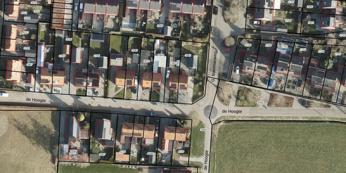 Gebruik de zoekbalk of klik op een perceel voor informatie over de adressen binnen dit perceel.