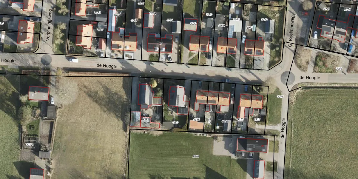 Gebruik de zoekbalk of klik op een perceel voor informatie over de adressen binnen dit perceel.