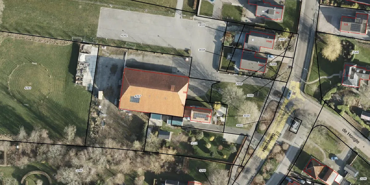 Het perceel waarop Hoofdweg 166 staat heeft een oppervlakte van 2525 m². Dit is een zeer groot perceel. De perceeloppervlakte wordt geregistreerd door het Kadaster. Gedetailleerde informatie over de maten van dit perceel kunt u vinden in het rapport Kadastrale kaart met maatvoering van Hoofdweg 166.