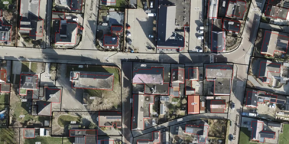 Het perceel waarop Hoofdweg 39 staat heeft een oppervlakte van 587 m². Dit is een groot perceel. De perceeloppervlakte wordt geregistreerd door het Kadaster. Gedetailleerde informatie over de maten van dit perceel kunt u vinden in het rapport Kadastrale kaart met maatvoering van Hoofdweg 39.